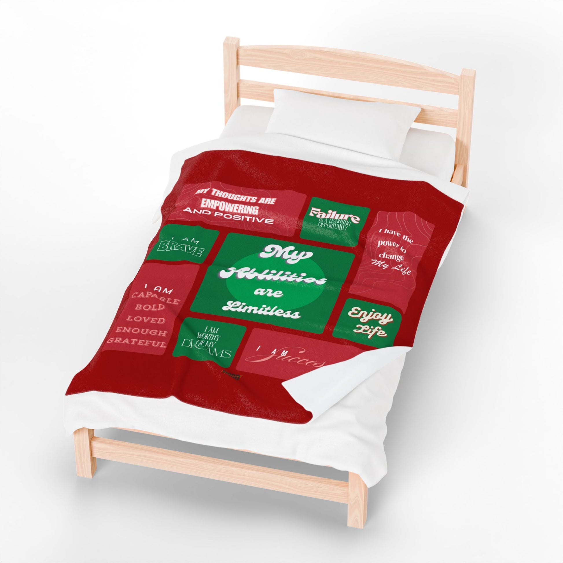 Wrap yourself in warmth and positivity with our plush blanket, adorned with empowering affirmations to inspire and uplift you every day. Crafted from the softest materials, this cozy accessory is perfect for moments of self-care and reflection. Each phrase is thoughtfully designed to encourage confidence and self-love, making it an ideal gift for yourself or a loved one.